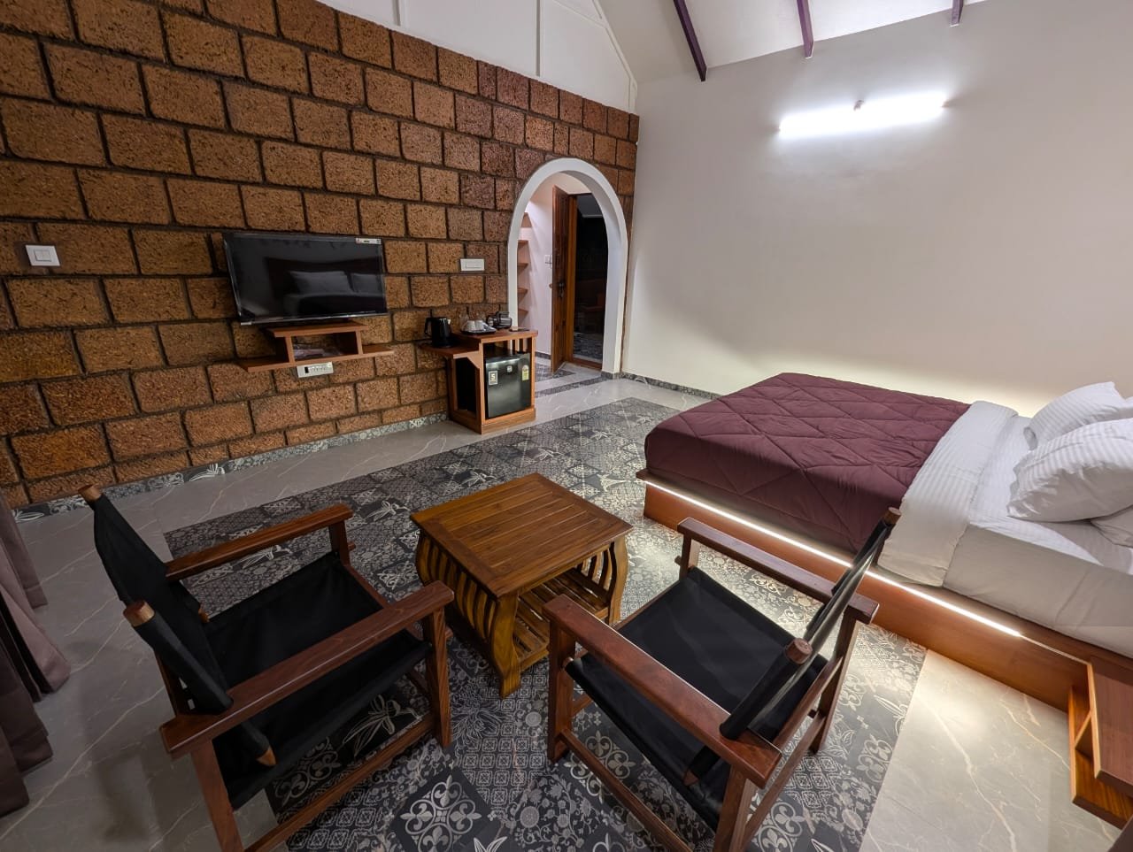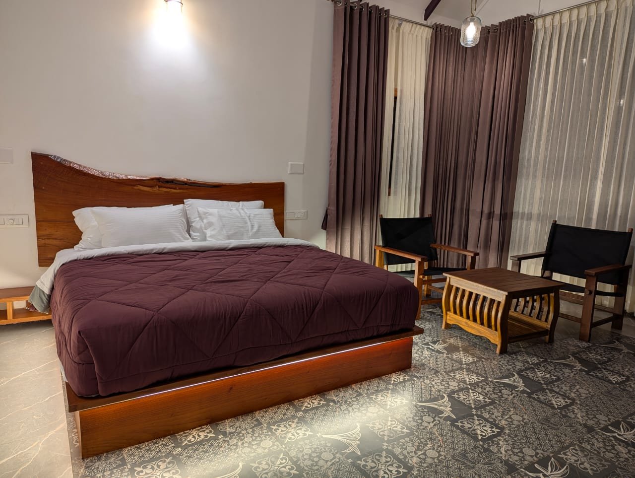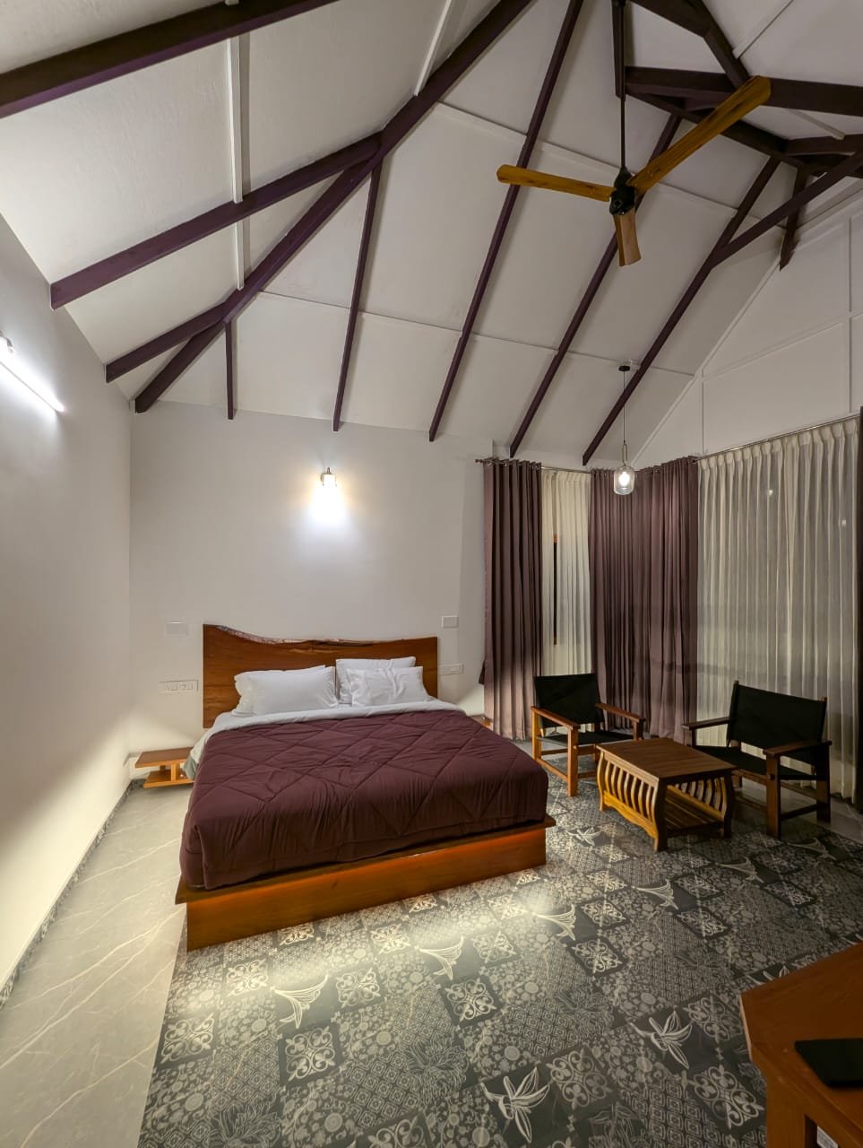 Signature Suite offers a serene retreat amidst the lush estate gardens. Wake up to chirping birds and the fresh aroma of coffee plantations. Each room features a minibar and fridge, while the spacious bathroom overlooks the greenery. Relax on your private balcony, sip morning coffee, and soak in the tranquil surroundings. Entertainment includes TV & WiFi, with fresh towels, toiletries, and cozy blankets provided. Stay includes homely meals prepared with fresh estate produce, served in our warm dining area. 🍽️ MAP Plan – Breakfast + Dinner – ₹5,999/Night + 5% Tax Seasonal pricing will be in effect from December 20 to December 31, 2025. 👨👩👧👦 Occupancy: 2 adults & 2 kids below 10 years (extra guests chargeable) 🕐 Check-in / Check-out: 1 PM / 12 PM Best For: Families seeking peaceful, private stays amidst nature.